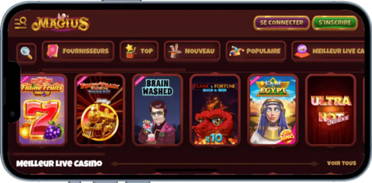 Vous pouvez utiliser votre smartphone Android ou IOS pour vous connecter et jouez aux jeux casino de deux manières. Tout d’abord, les joueurs français peuvent utiliser un navigateur web pour accéder à leur compte et à d’autres fonctionnalités de l’application mobile. Deuxièmement, vous pouvez télécharger gratuitement l’app depuis notre Magius casino sur IOS ou Android et jouez à tous les jeux. Ces deux systèmes de connexion sont pratiques et disposent des mêmes fonctionnalités, services et offres. Mais il faut souligner que l’application est plus rapide en termes de connexion et plus pratique pour les joueurs débutants. En plus, vous pouvez même jouer aux croupiers en direct sur l’application.